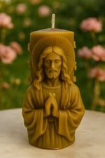 Featuring a detailed relief of the Sacred Heart, each piece reflects the natural golden tone and purity of beeswax.